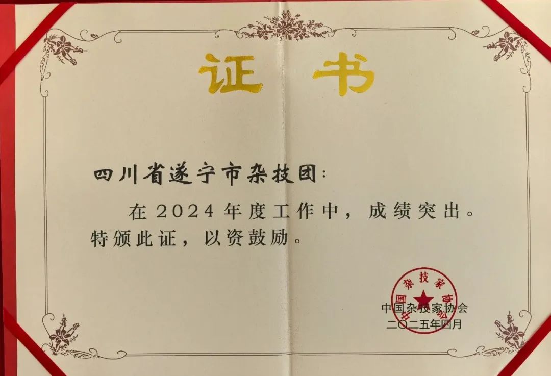 近日,中国杂技家协会第八届理事会第六次会议在福建省泉州市召开。会上,四川省杂协再次获评为中国杂协年度优秀团体会员,遂宁市杂技团荣获2024年度成绩突出优秀杂技院团。