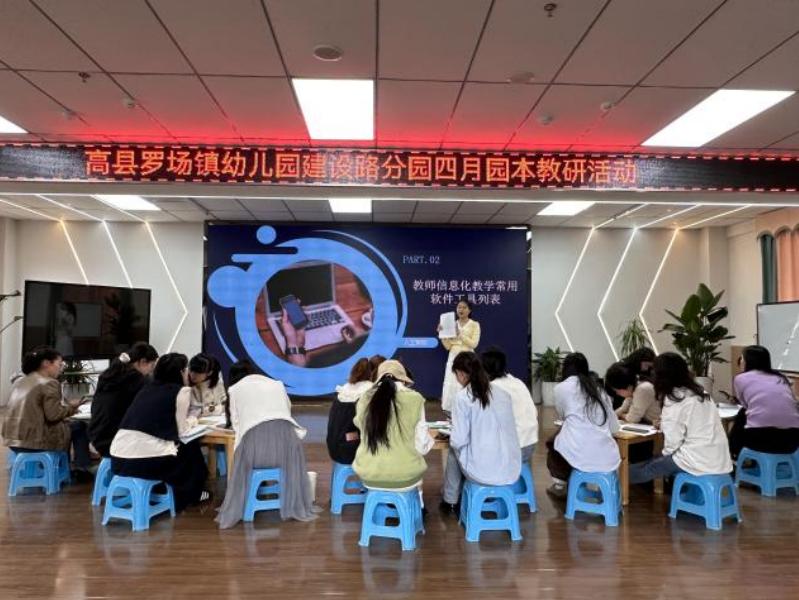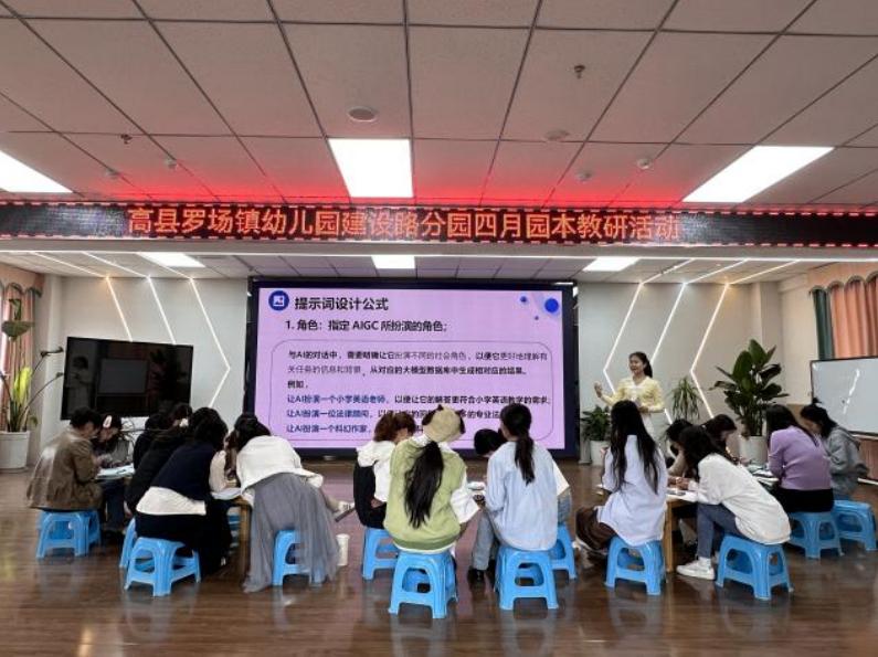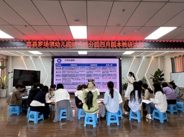 在数字化浪潮席卷教育领域的当下,人工智能(AI)正逐步成为教学创新的关键驱动力。为紧跟教育技术发展前沿,提升教师运用AI优化教学的能力,2025年4月23日,高县罗场镇幼儿园建设路分园开展了“人工智能赋能教学活动的有效运用”专题教研活动。此次活动聚焦理论学习、工具实操与经验分享,为教师们搭建了深度学习与交流的平台。