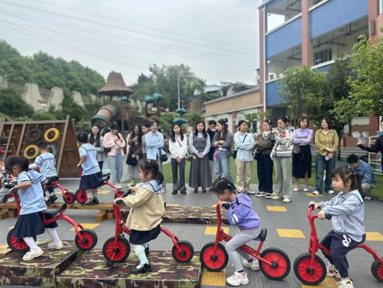 在叙州区高场镇中心幼儿园园长石小芸及行政的陪同下,商州镇中心幼儿园老师们参观了园所环境、功能教室、户外活动场地及班级区域创设。随后,观摩了幼儿的早操活动、自主游戏活动。孩子们专注投入的状态、教师灵活引导的教学策略以及游戏中展现的合作与创造力,给参观教师留下了深刻印象。