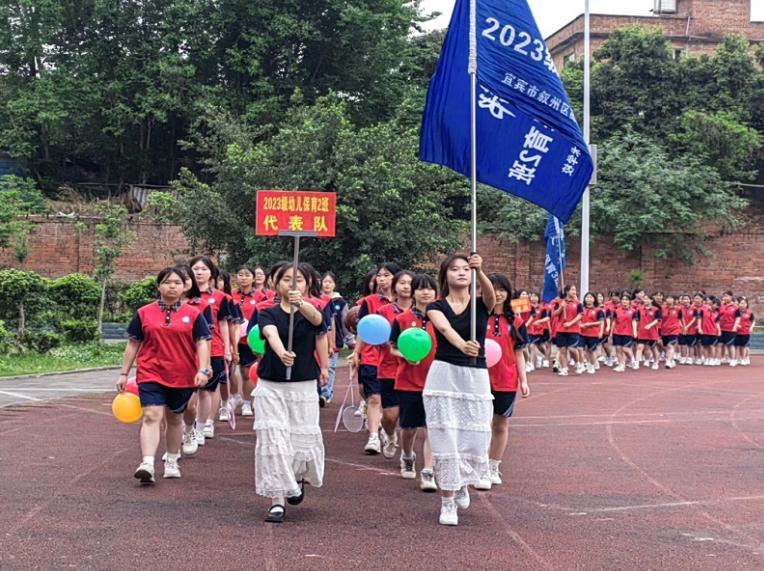 早上八点,伴着激昂的运动员进行曲,叙州区高场职业技术学校国旗队、校旗队率先入场,庄严肃穆;接着是裁判员方队、教师方队和各班级代表队,各班级代表队身着统一服装,高举班牌和班旗,口号响亮,步伐整齐的通过了主席台,部分班级还准备了创意表演,展现了青春活力。