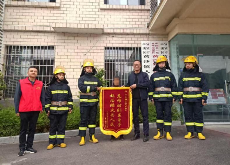 “哎呀,谢谢,太感谢那几个小伙子(黄沙镇综合应急救援队员)及时赶来扑灭了火源!”村民陈某某热泪盈眶的接连说道。2025年4月25日,宜宾市南溪区黄沙镇双燕村村民陈某某将一面写有“危难时刻显身手 赴汤蹈火为人民”的锦旗,送到了黄沙镇综合应急救援队员的手中。