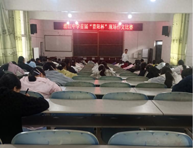 2025年4月25日,江安县淯江初级中学校首届“青阳杯”现场作文比赛在阶梯教室火热开赛。该校七、八年级各班写作能手齐聚一堂,在笔尖流淌的墨香中展开了文学角逐。