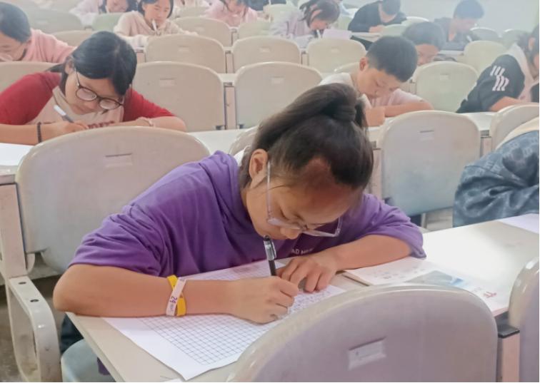 本次比赛采用双命题模式,江安县淯江初级中学校七年级以“那一刻,我的世界___”为题,引导学生捕捉生活中的闪光瞬间;该校八年级则围绕“我和文学”,鼓励学生畅谈与文学的不解之缘。随着比赛铃声响起,50分钟的创作时间里,选手们全神贯注,或凝眉思索,或奋笔疾书,现场气氛紧张而热烈。