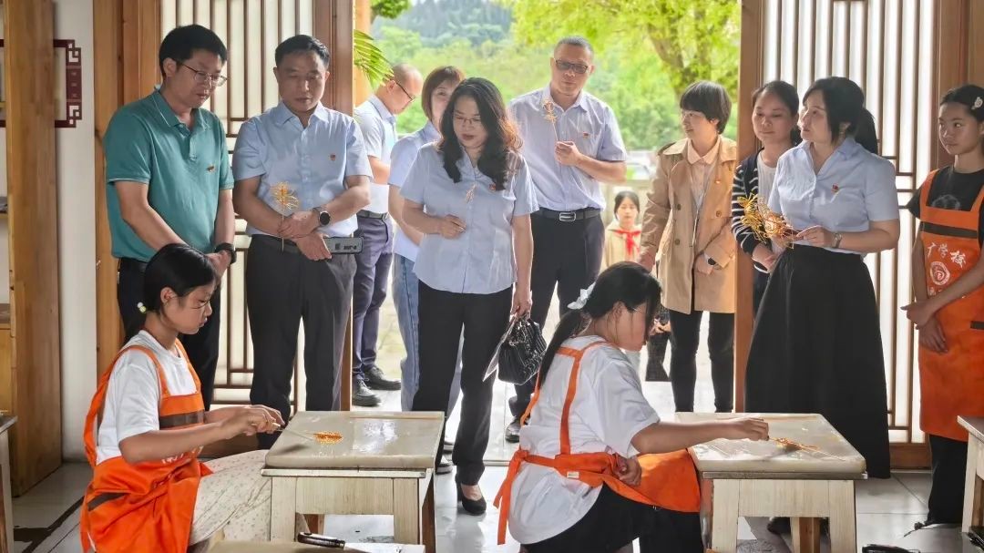随后,毛政红一行到叙州区南广学校大益校区,实地参观了学校的四坊三园一中心,沉浸式感受传统文化与校园教育深度融合的独特魅力。