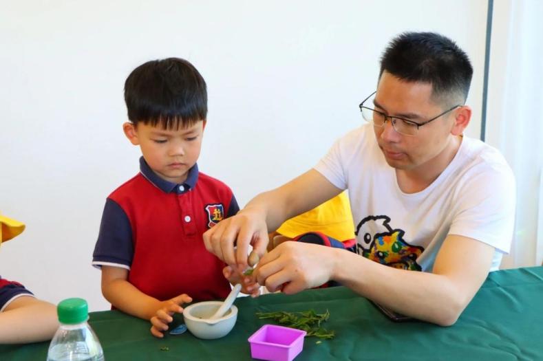 结合班级“茶文化”主题,孩子们将茶叶融入皂基,倒入可爱的模具中。等待凝固的时间里,三江新区红星幼儿园老师还讲解了茶的历史,一块块清香的茶皂,成了研学最美的纪念品!