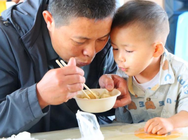 午餐时间到!孩子们洗净小手,和大朋友们一起包抄手。捏面皮、放馅料、学折叠……虽然形状千奇百怪,但成就感十足。吃着自己包的抄手,孩子们笑得格外甜:“这是我包的,超级好吃!”