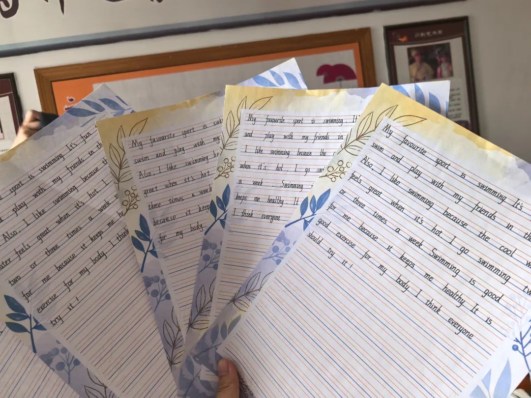 初赛期间,全体学生统一书写经典英文诗歌或谚语节选,评委依据书写规范(40%)、美观度(30%)、版面整洁(30%)标准进行评选,每班前5名晋级决赛。4月11日决赛现场,40名选手于录播教室限时20分钟完成《How teenagers keep fit》节选创作,英语教研组教师从字母结构、语法准确、创意排版等维度即时评分,最终评选出一等奖5名、二等奖15名、三等奖20名,并颁发英文原版证书。
