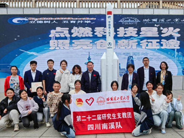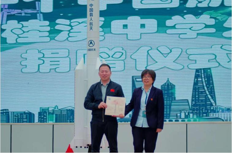 在第十个中国航天日到来之际,2025年4月24日,宜宾市南溪区桂溪初级中学校与哈尔滨工业大学研究生支教团联合举办"点燃科技星火 照亮创新征途"航天日捐赠仪式,以航天精神为引领,开启校际科创教育合作新篇章。
