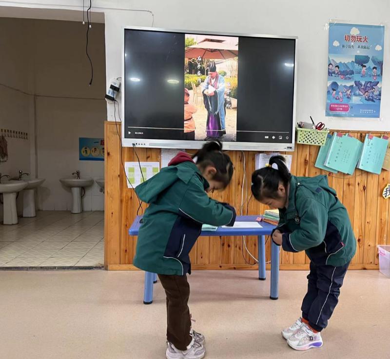 江安县夕佳山镇中心幼儿园教师利用晨间谈话、讲故事等形式,向幼儿讲解文明礼仪的重要性,并介绍日常生活中常见的文明礼仪知识,如见面问好、主动让座、不乱扔垃圾等。同时,通过观看文明礼仪动画片、图片展示等方式,生动形象地让幼儿理解文明礼仪的具体表现,激发幼儿学习文明礼仪的兴趣。