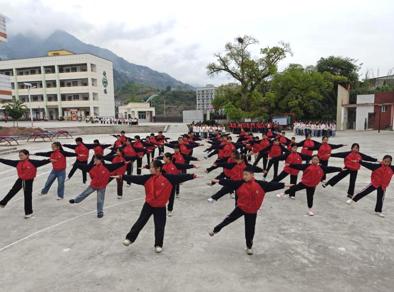 紧接着,运动会首项赛程——班级广播体操展演正式开始,屏山县中都镇中心学校全体学生身着统一服装,以整齐划一的动作演绎第七套广播体操,本次广播体操注重团体合作及展现集体协作的力量之美。
