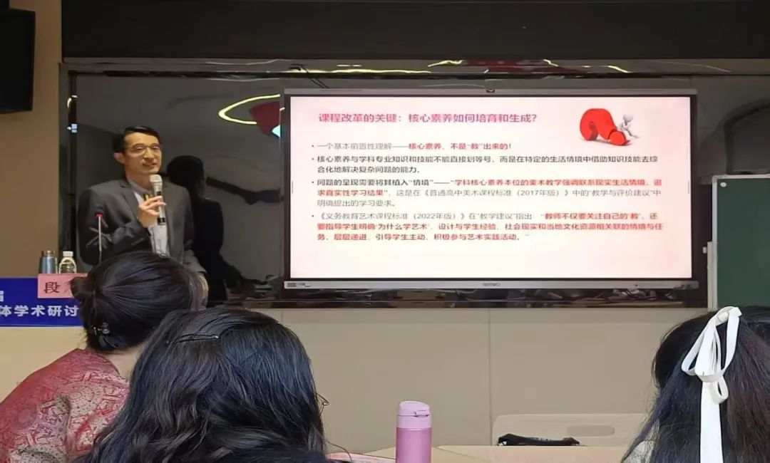 在学科论坛环节,语文与美术学科聚焦"真实问题驱动下的主题式学习"展开深度研讨。通过观摩多节示范课,与会教师达成共识:以真实问题为切入点构建主题式学习模式,能有效激活学生的高阶思维能力。语文分论坛中,四川省教育科学研究院何立新教授结合具体课例,系统阐释问题驱动式情境课堂的实施策略,强调任务设计需立足文本,问题生成应契合学情,构建起"文本分析-问题设计-认知建构"的良性循环机制。四川省教育科学研究院段增勇教授则从核心素养培育视角,提出课堂变革的实践路径框架,强调以问题导向串联教学目标、教学内容与评价体系,并从情境创设、支架搭建、思维可视化等维度,为教师打造品质课堂提供方法论指导。