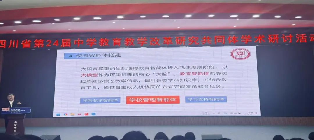 遂宁一中教师团队于4月24日至25日赴四川省新津中学参加第二十四届中学教育教学改革研究共同体学术研讨活动。本次活动以"核心素养导向的育人体系建构与课堂变革"为主题,通过集中研讨、校长论坛、学科论坛及教科研论坛等多元形式,深度聚焦人工智能与教育教学深度融合背景下的学校教育理念重塑、教学方法革新与评价体系升级,为参会校长及教师呈现了一场前沿教育思想与创新实践的学术盛宴。