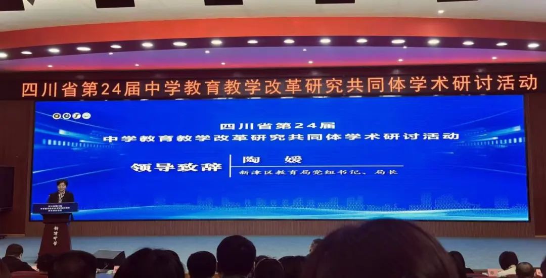 在开幕式环节,四川省新津中学党委副书记、校长叶丰平率先发表热情洋溢的欢迎辞,正式开启学术交流帷幕。新津区教育局党组书记、局长陶媛立足区域教育发展战略,从"深化课程改革、优化育人生态"维度发表高屋建瓴的讲话;新津区人民政府副区长李明结合新时代教育强区建设目标,系统阐释了教育现代化发展愿景。四川省教科院党总支书记、院长廖德斌通过详实的数据分析,深入解读人工智能赋能教育创新的时代命题,明确提出"理论建构-实践探索-成果转化"三位一体的学研融合创新路径。