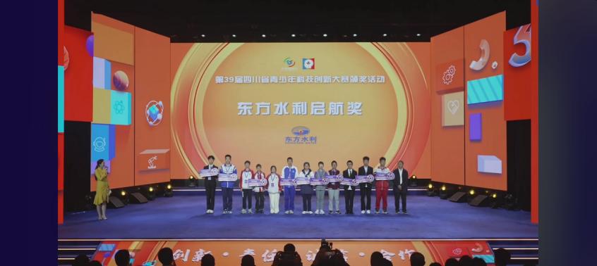 4月27日的颁奖盛典将大赛推向了高潮。现场主持人宣读获奖名单,念到屏山县大乘初级中学校获得“东方水利启航奖”时,沈磊、魏建凯、罗缘缘三人笑逐颜开,快速奔向领奖台。他们精心设计的《裸眼3D演示装置》是这次9个专项奖其中之一。
