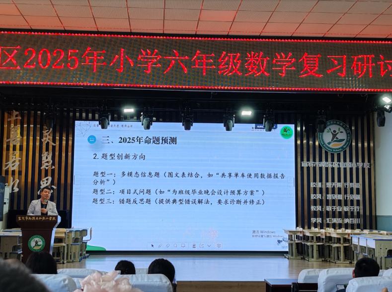 南溪区仙源小学校鲁琴琴老师紧随其后,带来《数与代数复习建议》讲座。她深入剖析了近三年考题中数与代数的分值占比,从数的认识、数的运算、等式与方程、问题解决等维度展开细致分析,特别强调复习中要着重培养学生认真读题、审题的习惯,为教师们理清了数与代数领域的复习脉络。
