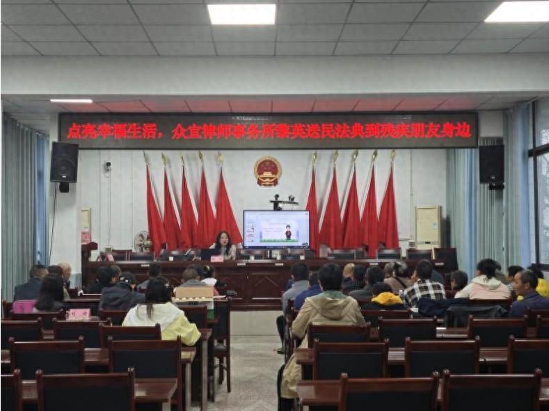 为切实提升农村残疾人法律意识,增强其运用法律武器维护自身合法权益的能力,2025年4月29日上午,宜宾市南溪区长兴镇残联邀请了四川众宜律师事务所律师黎英在长兴镇政府为来自仙临镇、刘家镇、长兴镇的30名残疾人开设了法律讲堂,专题讲解《民法典》。