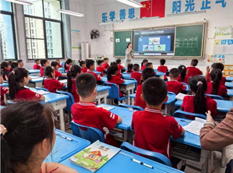 洪轩蓉老师执教《平移旋转现象》,以风车转动(旋转)、升国旗(平移)等生活场景为切入点,通过直观演示激发学生兴趣,引导学生理解抽象的数学概念,课堂互动性强。随后,主研人员陈蓉作结题报告,系统阐述美术与数学教学融合的策略与实践成果。