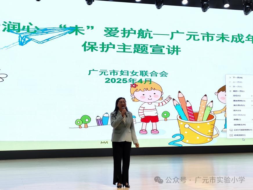 广元市妇联党组成员、妇儿工委办主任母春玲为家长们带来了一场生动的未成年人保护主题宣讲。宣讲以《以爱润心 “未”爱护航》为题,重点讲解了家庭保护的责任与义务,并针对低年级孩子的特点,强调了防欺凌、防性侵、防拐骗等实用安全知识。母主任通过真实案例,指导家长如何通过日常沟通发现孩子异常信号,强调建立信任关系的重要性。同时,就实施家庭教育强调了四个关键词:包容、接纳、共情、鼓励,希望家长为孩子们营造更温馨的成长环境。此次宣讲不仅提升了家长们的法律意识和保护能力,更搭建起家校社协同育人的桥梁。