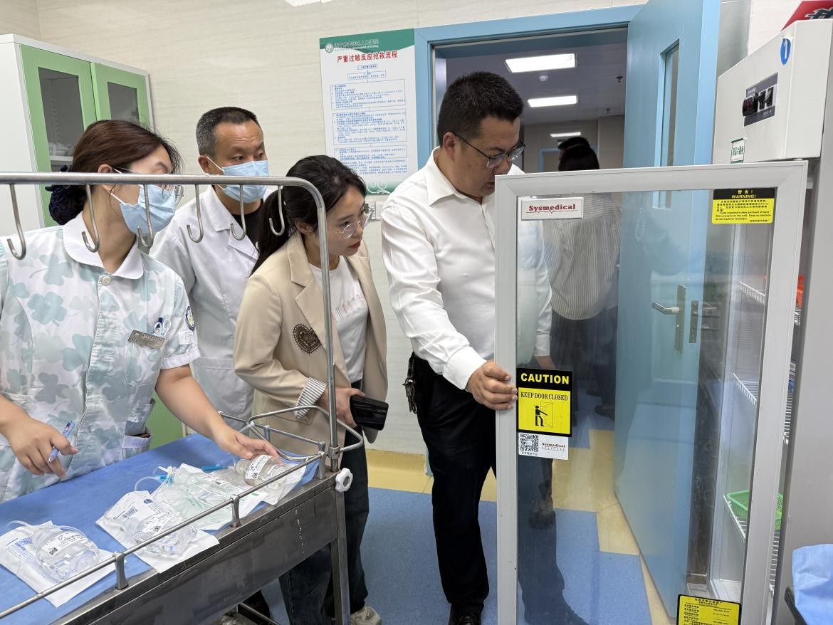 代兵率队深入临床一线,对各科室开展医疗质量专项检查。从病历书写的及时性、规范性,到医疗核心制度的落实情况;从院感防控流程到药品管理细节,每一个环节都逐一核验、严格把关。党委委员李家林陪同检查。