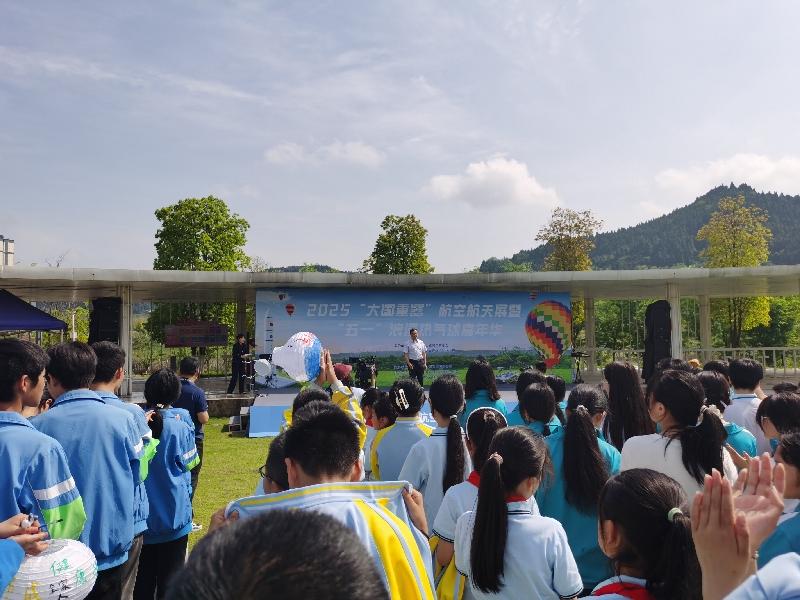 2025年4月30日,安居区东禅小学组织五年级部分学生到安居区凤凰栖公园参加安居区2025年“大国重器”航空航天展暨“五一”浪漫热气球嘉年华开幕式。