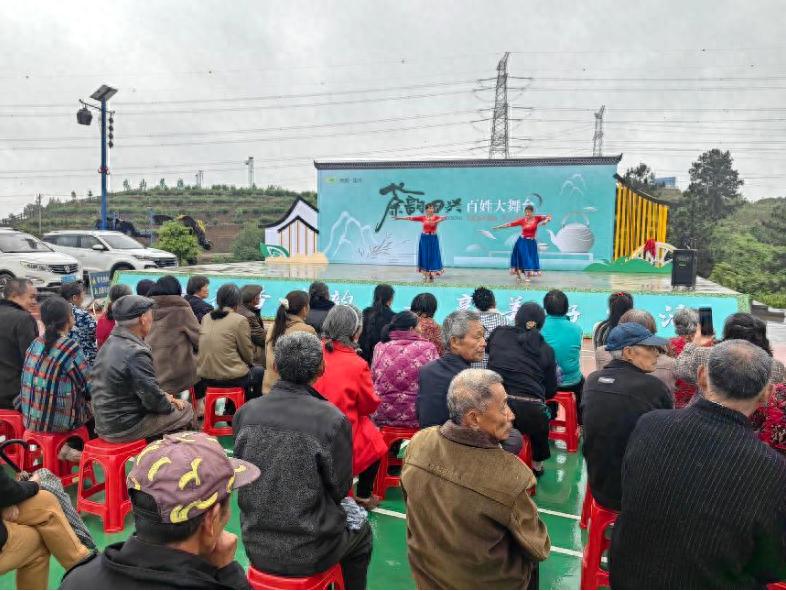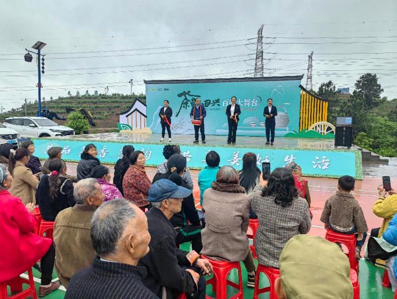 为庆祝“五一”劳动节,丰富村民精神文化生活,2025年4月29日,宜宾市南溪区黄沙镇田兴村在茶文化体验中心的百姓大舞台举办了一场以“春茶飘香 茶韵田兴”为主题的文艺活动。活动吸引了众多村民及游客前来观赏。大家在茶香四溢的茶园中欣赏节目,提前感受浓浓的节日氛围。