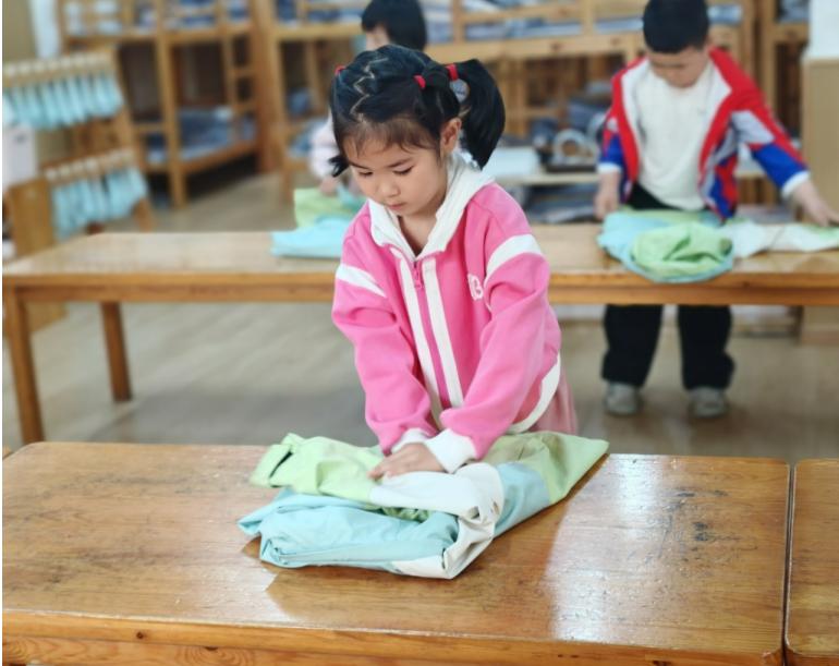 翠屏区双谊镇中心幼儿园大班孩子们举行了一场别开生面的劳动技能大比拼!分组比赛叠被子、叠衣服、整理书包。孩子们小手灵活,认真专注,被子叠得方方正正、衣服折得整整齐齐、书本文具摆放井然有序。通过这次活动,孩子们学会了自理与合作,个个都是劳动小标兵!