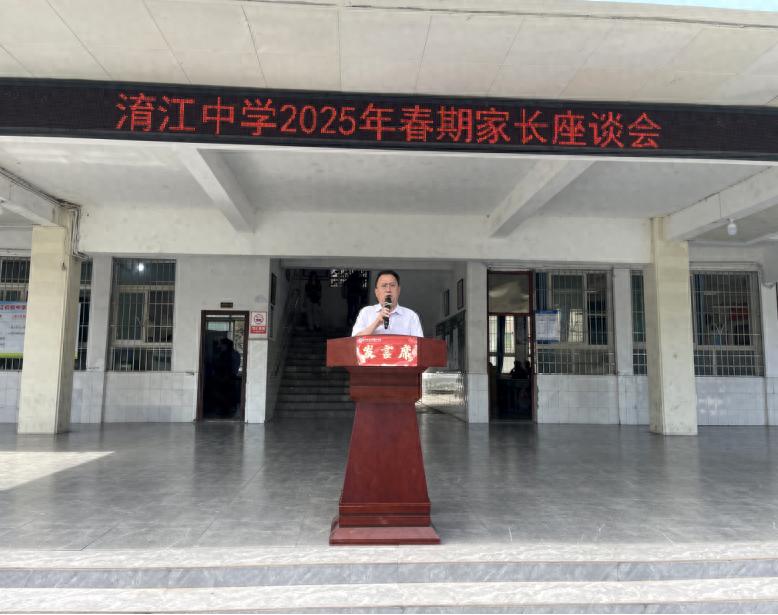 江安县淯江初级中学校党支部书记、校长何开阳发表了热情洋溢的致辞。他介绍了学校的办学理念、发展规划以及教育教学、校园安全等重点工作的开展情况和所取得的成果,并强调了家长要做好“成长陪伴者”,与学校形成“目标一致、步调协同”的教育共同体,助力孩子成长。
