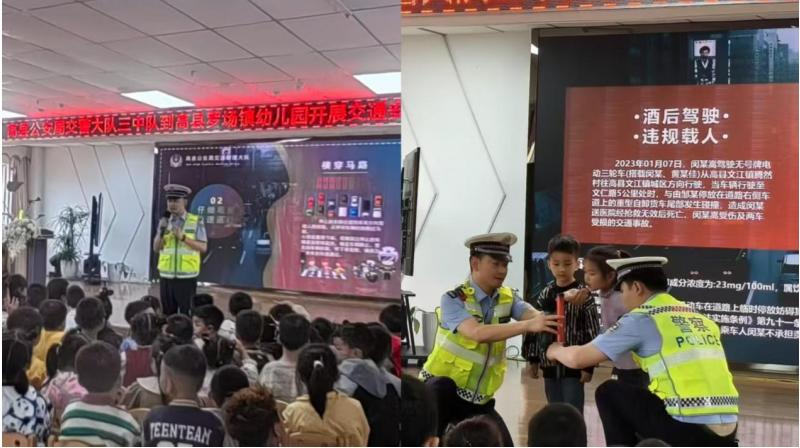 为进一步加强幼儿园法治安全教育工作,筑牢法治防线,共度平安假期,提高师幼法治安全自我意识及自我保护能力,创建和谐、平安校园。4月28日下午,高县公安局交警大队三中队李警官走进罗场镇幼儿园对该园师生开展了“五一”劳动节交通安全专题知识宣讲。