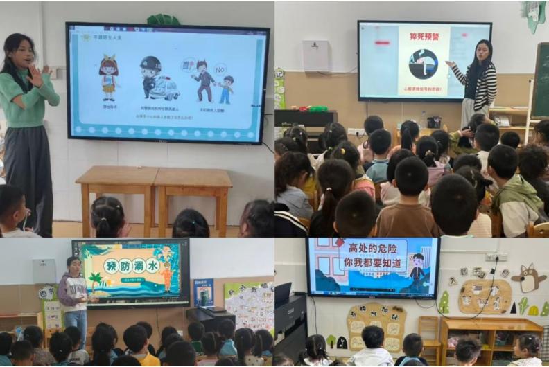 高县罗场镇幼儿园各班级教育活动围绕交通安全、消防安全、饮食卫生安全、防溺水、居家安全为主要内容而展开。该园老师们把各种抽象、单调的防护知识有机地渗透到幼儿一日生活中,通过图片、视频、讲故事等多种生动有趣的互动形式实施安全教育活动。同时引导幼儿在假期出行时注意安全,遵守交通规则,不要随便离开大人,以防走失。