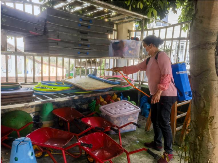 在全体幼儿离园后,南溪区南溪街道中心幼儿园后勤护校人员对园内教室、活动室、卫生间、走廊等区域进行全面细致的消杀工作。重点针对墙角、下水道等容易滋生细菌和吸引鼠类的角落,采用安全有效的消杀药剂进行喷洒,同时加强通风换气。此外,在园内外合适位置科学投放灭鼠器械和药物,最大限度降低鼠疫传播风险。