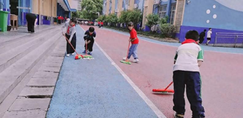 操场之上,劳动氛围热烈。面对面积大、垃圾零散的状况,同学们分组协作,你扫我收。遇到草丛里的垃圾,他们不怕脏累,一一清理。虽汗水沾额,但热情不减,相互鼓励声此起彼伏。校园道路上,同学们同样一丝不苟,沿着路边认真清扫,不放过任何角落。