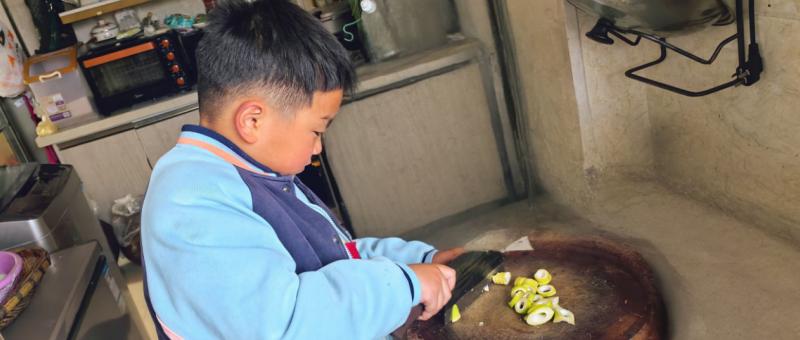 劳动教育从校园延伸至家庭,南溪区仙源小学校二年级2班溪望中队一直以来坚持“家务养成计划”,鼓励孩子们在厨房、阳台、书桌旁解锁生活技能。家庭生活小能手李晟希系着迷你围裙,在妈妈的指导下学习切菜:“左手摁住菜,右手拿刀切,大小要均匀!”照片中,认真的模样值得点赞。据班主任了解,全班家务参与率达100%,85%的学生能独立完成叠衣、擦桌等基础劳动,12名“小厨师”已能协助家长准备早餐。