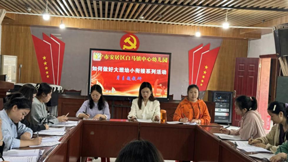 为切实推进幼儿园与小学科学、有效衔接,实现孩子从幼儿园到小学的顺利过渡,近日,遂宁市安居区白马幼儿园开展“如何做好大班幼小衔接系列活动专题教研”活动。本次活动由保教主任周欢主持,全体教师参与。