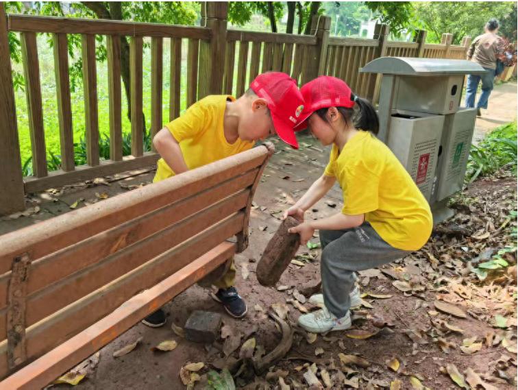 高店分园则开启户外玩具分类挑战赛,大班孩子们分合作整理户外中小型玩具,走进社区为劳动者们送水,走进湿地公园公共设施,用双手构建“劳动金字塔”。