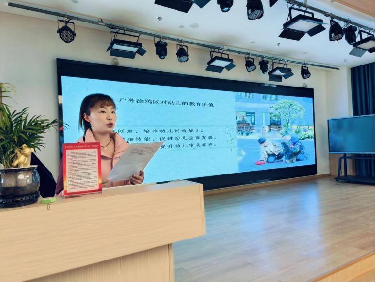 活动中,三位研修负责人依次汇报了研究成果。翠屏区永兴镇中心幼儿园大班项目《数字化背景下幼儿园教师教学方法的探究与实践》的老师通过实际案例,展示了如何利用平板电脑、互动课件等工具让课堂更生动有趣;中班组《农村幼儿园运用乡土材料开展艺术活动的实践研究》的老师用竹筒、树枝、石头等常见材料,开发了敲击、拓印、泥塑等音乐和美术艺术活动,让农村资源融入幼儿美育;小班组《幼儿园户外涂鸦区环境创设的实践研究》的老师分享了如何根据幼儿兴趣调整涂鸦区的材料投放和空间设计,并展示了孩子们在涂鸦活动中创作的充满童趣的作品。