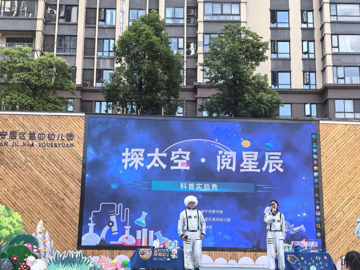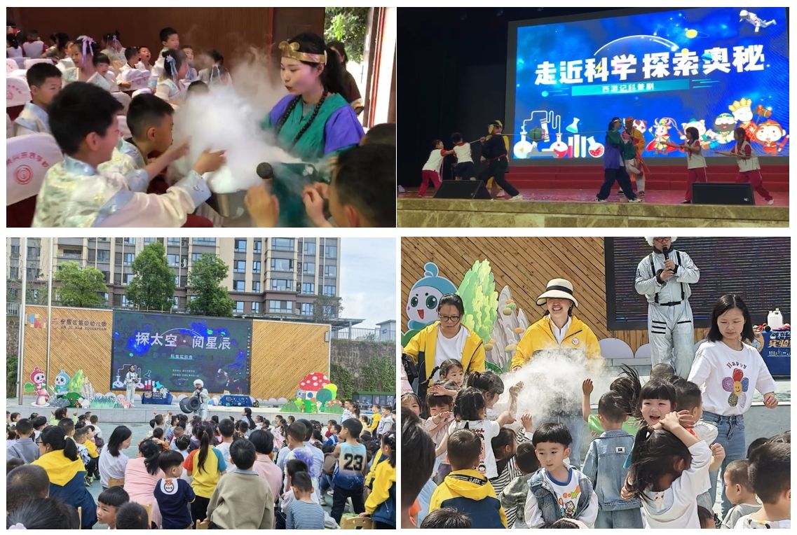 4月30日,《探太空·阅星辰》——科学实验秀在安居区第四幼儿园展开,团队老师化身宇航员,以“科学秀”为核心形式,结合儿童身心特点,通过科学和表演相结合的科普舞台剧在舞台上给小朋友呈现科学的奇妙,科普剧中穿插趣味性、挑战性、体验式的科普游戏和小朋友互动,营造浓厚的科学探索氛围。