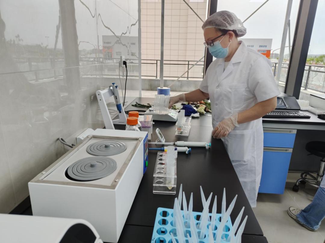 接着一行人参观了生物检测实验室。工作人员现场演示了农药残留物、微生物等指标的快速检测流程,并对所有抽检的食材使用专用的留样柜进行留样。