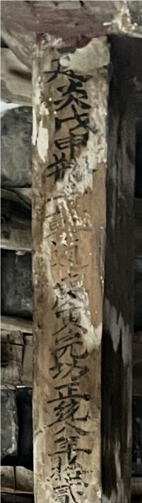 南池寺梁上墨书题记:“建炎戊申创,乾道庚寅完功。”