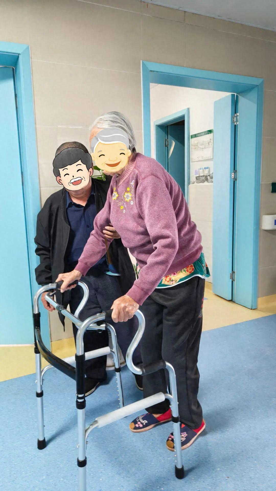 功夫不负有心人!术后第2天,王婆婆就能在床上自主翻身;术后第4天,在医护人员的搀扶下,成功借助助行器站立并行走;术后第7天,她已经能够在助行器的辅助下自行行走!看着老人重新迈出步伐的那一刻,病房里响起了热烈的掌声,家属更是激动得热泪盈眶。