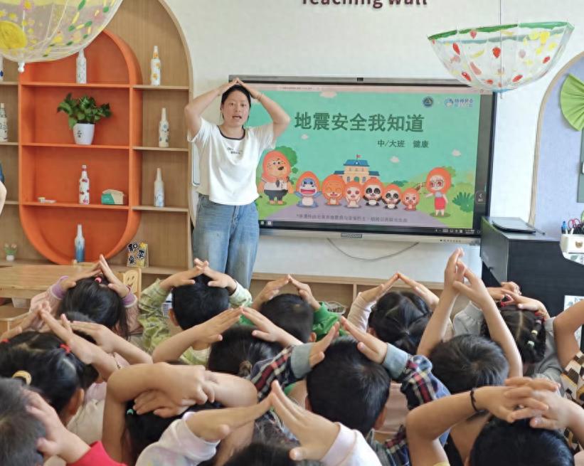 演练前,翠屏区永兴镇中心幼儿园运用国旗下的演讲、图片、视频、儿歌等多种形式,让幼儿了解地震带来的危害。该园教师组织幼儿讨论逃生路线、注意事项,熟悉 “安全三角区”和逃生技巧,提升自我防护意识。