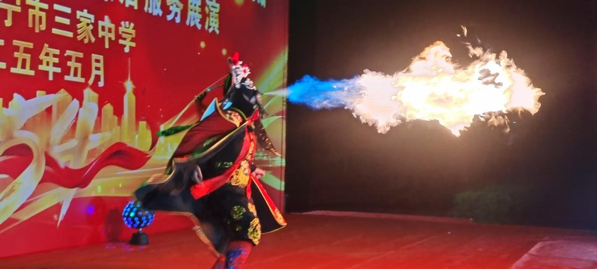 此次文艺汇演涵盖小品、舞蹈、打击乐、变脸、歌唱、朗诵等节目形式。8.3班的舞蹈《绮梦山海》,以动感的节奏、活力四射的舞姿瞬间点燃现场气氛,展现出少年们的蓬勃朝气;小品《抗日》,形象再现当年八路军抗战场景,将学生的思绪带回那段艰苦卓绝的峥嵘岁月,《义勇军进行曲》再次响彻校园,激发了全场师生强烈的爱国情怀;川剧《变脸》,让观众领略到了变脸艺术的独特魅力,更在潜移默化中增强了大家对传统文化的认同感与自豪感,激发了广大群众尤其是年轻一代对中华优秀传统文化的热爱与传承热情,为传统文化的保护与发展注入了新的活力。