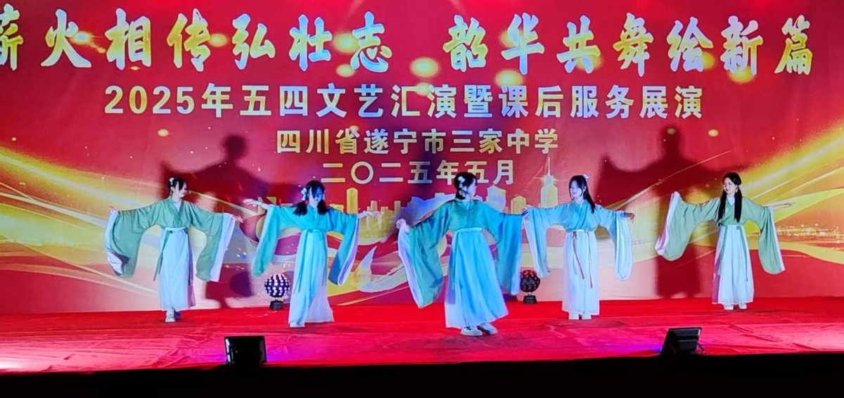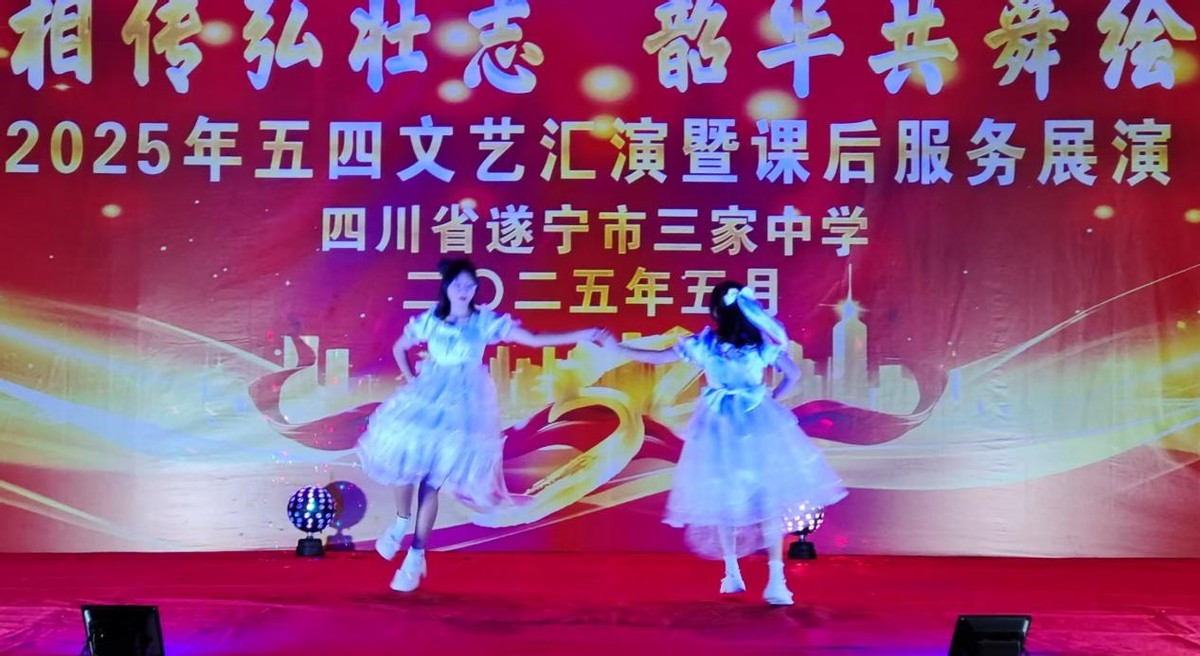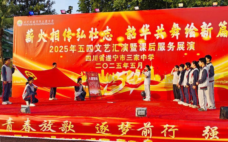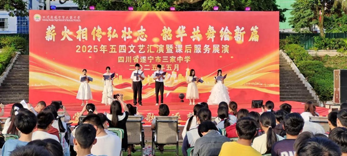 为弘扬五四精神,展现新时代少年风貌,全方位呈现课后服务育人成效,5月8日晚,四川省遂宁市三家中学成功举办庆五四文艺汇演暨课后服务成果展示活动。全校师生齐聚一堂,用精彩的表演与丰硕的成果,奏响青春奋进的乐章。
