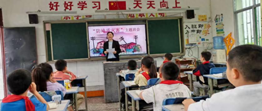 在“防地质灾害”主题班会上,江安县夕佳山镇周坝小学校教师借助精心制作的PPT,结合生动形象的图片和视频,向学生详细讲解了地震、山体滑坡、泥石流等常见地质灾害的成因、特点和危害。通过列举真实案例,让学生深刻认识到地质灾害的严重性和突发性。该校教师还耐心传授了实用的预防措施和应对方法,如在地震发生时如何迅速寻找安全躲避点,遭遇山体滑坡、泥石流时怎样正确逃生等。学生们认真聆听,积极与老师互动交流,踊跃分享自己所了解的相关知识和避险经验。