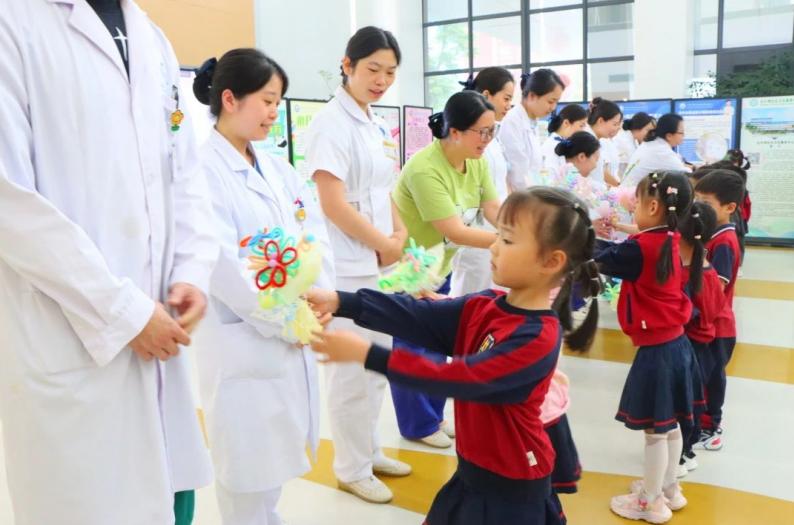 表演结束后,三江新区红星幼儿园每个班级的幼儿代表向护士们送上了亲手制作的慰问礼物,用创意手工作品表达心中的敬意和深深的祝福。