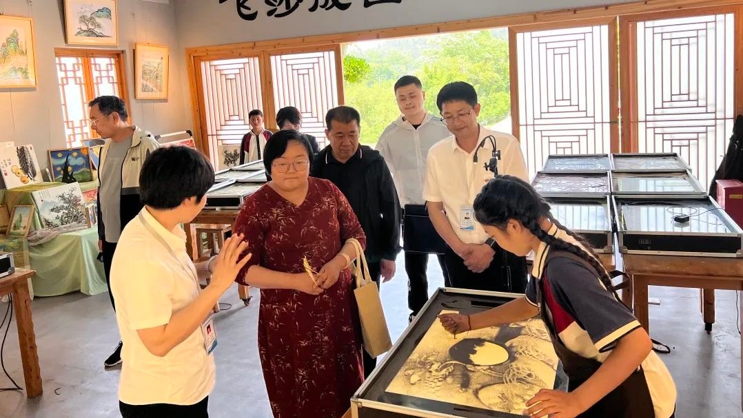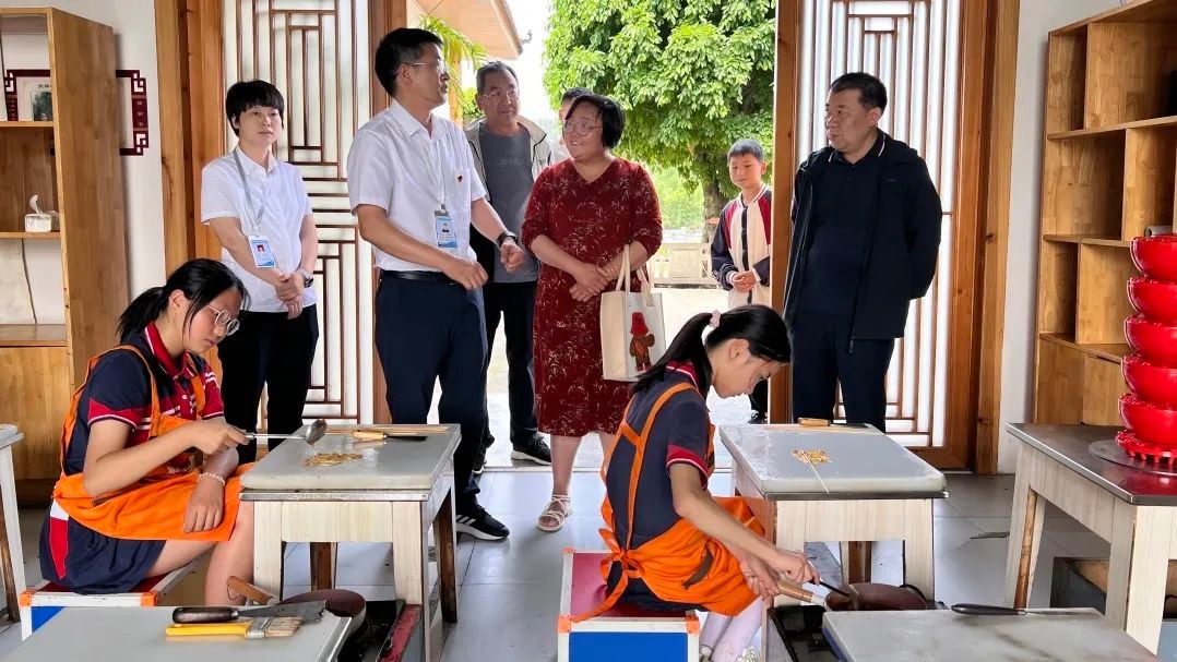 调研组到叙州区南广学校非遗传承基地,近距离感受非遗文化在校园的传承实践。工作坊里,孩子们正在熬糖画画,学生们专注的神情和灵巧的双手,让非遗技艺焕发出新的生机。目前,该校已形成多个非遗特色社团,学生们通过社团活动深入学习非遗技艺,并将非遗元素融入到艺术创作和日常生活中。