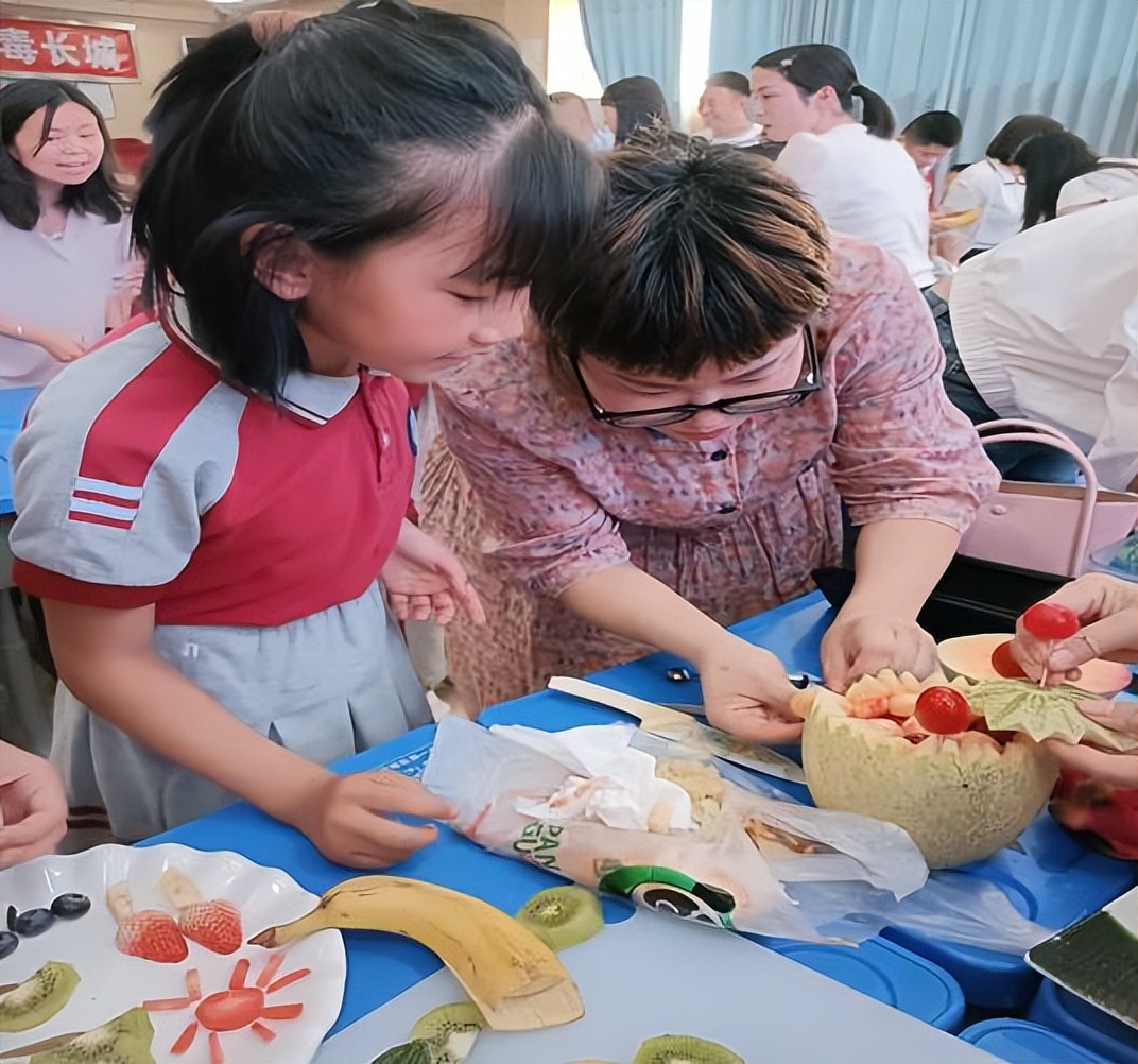 家长作为“智囊团”全程参与,从挑选水果到构图设计,与孩子共同探讨方案。一位家长表示:“和孩子一起动手,不仅教会他生活技能,更让我感受到他的奇思妙想。”部分家庭还巧妙使用环保果盘、食品级雕刻刀等,保证安全。