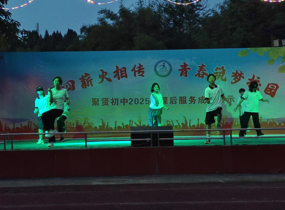 为传承五四精神,展现青春风采,遂宁市安居区聚贤初中于5月8日成功举办了“五四薪火相传 青春筑梦校园”2025年校园艺术节暨课后服务成果展示活动。此次活动在教师们的精心筹备与组织以及同学们的精彩演绎下,取得了圆满成功。