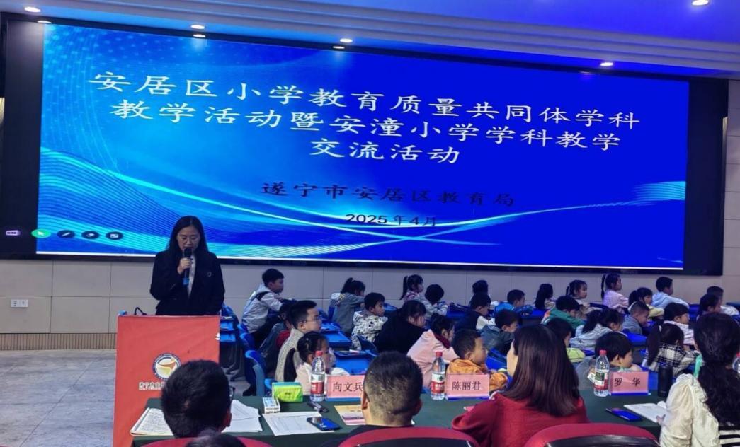 春意盎然的四月,遂宁市安居区第一小学校迎来了一场教育盛会。4月27日,由遂宁市安居区教育局主办、安居一小承办的“小学教育质量共同体学科教学活动暨安潼小学学科教学交流活动(数学专场)”在安居一小学术报告厅圆满举行,来自安居、潼南两地的教育精英齐聚一堂,共绘数学教研新图景。