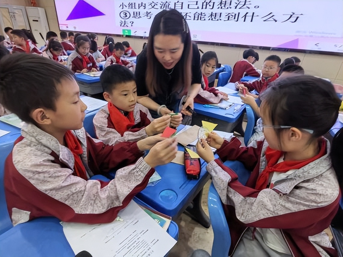 下午的教学展示环节更是异彩纷呈。安居四小陈碧洪老师通过《三角形的内角和》一课,运用实验探究法构建数学模型。