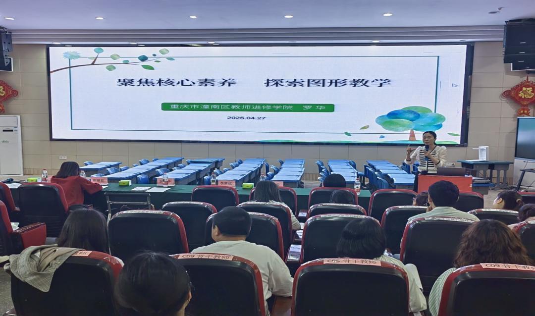重庆市潼南区教师进修学院罗华院长随后带来“聚焦核心素养,探索图形教学”专题讲座,以“七巧板”课例为切入点,深入剖析核心素养导向下的教学策略变革,为200余名参会教师点亮教学智慧。